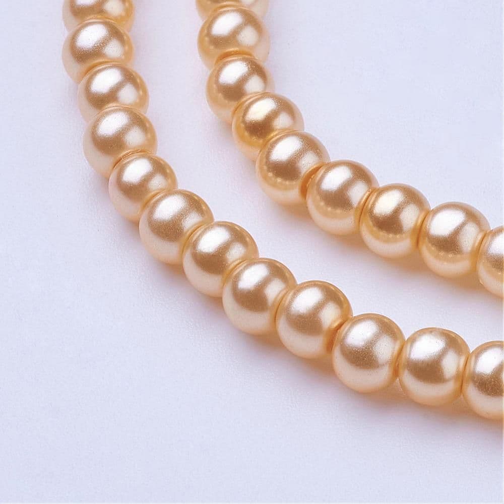 A glass bead with a pearl finish coating. Approximately 4mm beads with around 100 beads to a string. Available in other sizes and other colours are available too