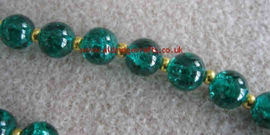 These are a lovely deep green shade - almost a bottle green. These have all the usual appeal of lovely crackle glass which let the light shine through them in such a lovely way. They are about 8mm in diameter with a hole of 1mm. Supplied in a strand of 25 beads