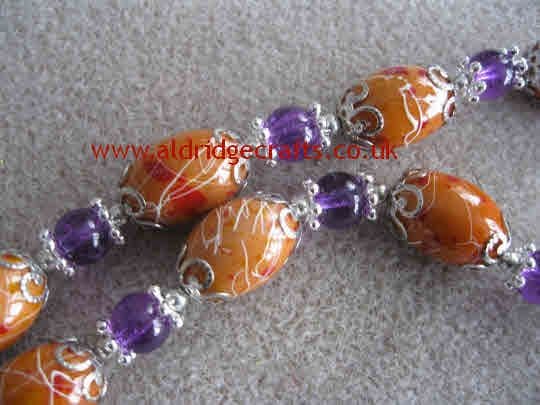 These are a gorgeous deep purple. These have all the usual appeal of lovely crackle glass which let the light shine through them in such a lovely way. They are about 8mm in diameter with a hole of 1mm. Supplied in a strand of 25 beads